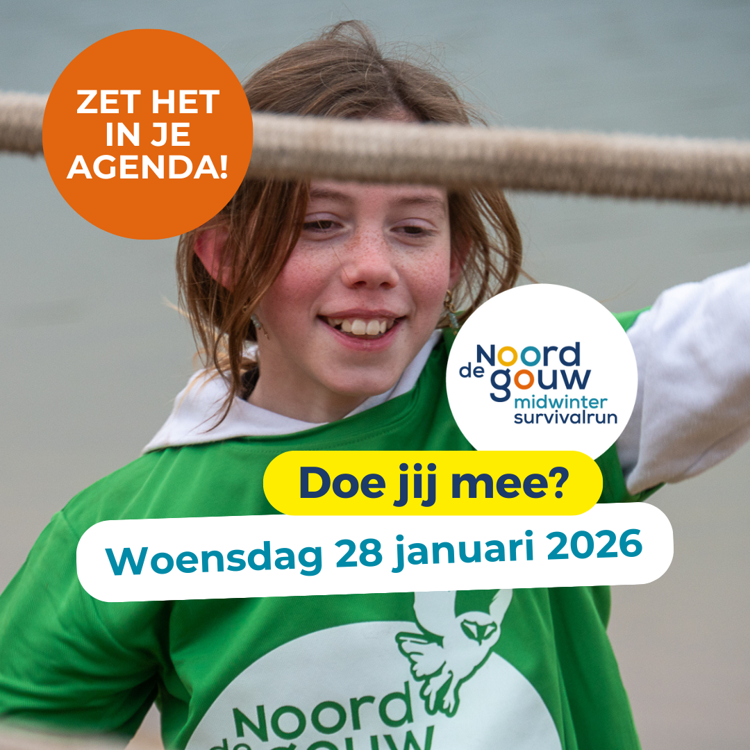 maandag 29 september 2025 / Categories: Survivalrun Save the date! Noordgouw Midwinter Survivalrun 2026 Het duurt nog even, maar zet de datum alvast in je agenda! Woensdag 28 januari 2026 is weer de Noordgouw Midwinter Survivalrun op het Heerderstrand in Heerde. Speciaal voor leerlingen van groep 7 & 8 van de basisschool en Noordgouw-leerlingen. In december kan je je opgeven, dus houdt onze website en social media in de gaten.